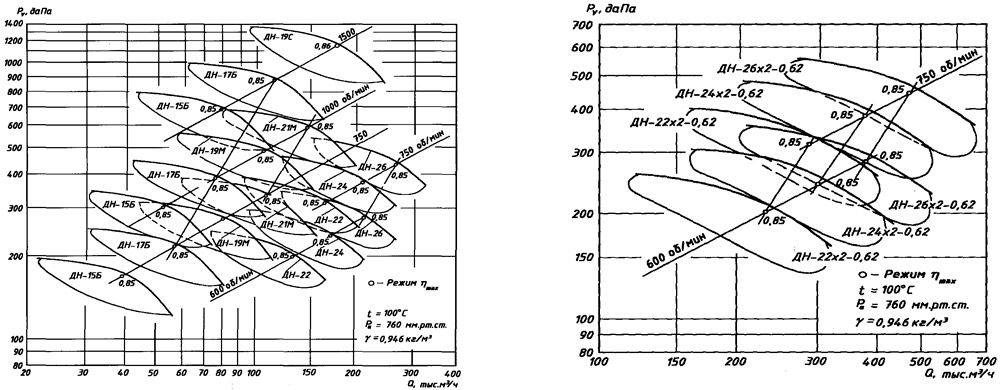 Однотипные дымососы, предназначенные для котлов на твердом или газообразном (жидком) топливе, имеют совпадающие аэродинамические характеристики.
